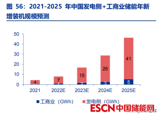 未來 5 年中美儲能需求澎湃。根據我們測算,中國發(fā)電側儲能將由 22 年的 7GWh 上 升至 25 年的 41GWh,考慮工商業(yè)儲能,25 年中國發(fā)電側+工商業(yè)新增電化學儲能裝機有 望突破 46GWh。受益于美國投資稅收抵免政策延續(xù)及可再生能源發(fā)電比例提升帶來的電網 調節(jié)需求增長,根據 Wood Mackenzie 數據,1H22 美國儲能裝機達到 5.9GWh,22 年 美國儲能有望裝機 13.4GWh。22-26 年美國新增儲能裝機合計規(guī)模有望達到 194.1GWh, 22-26 年儲能裝機 CAGR 為 43.5%。