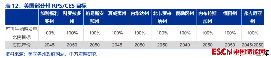 2.3.2 美國:遠期可再生能源發(fā)電目標確立,儲能需求徐徐打開
