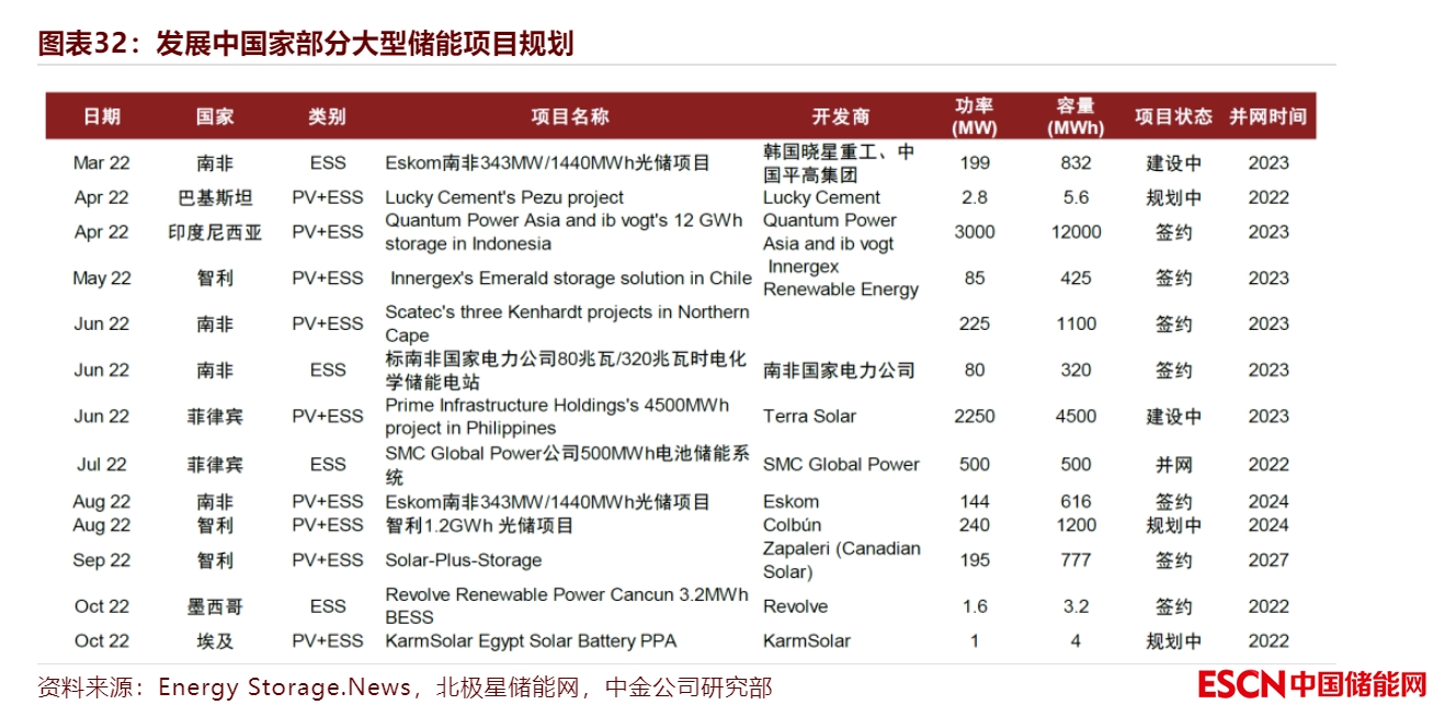 2022年以來,我們統(tǒng)計(jì)發(fā)展中國家陸續(xù)落地眾多大型表前光儲項(xiàng)目。