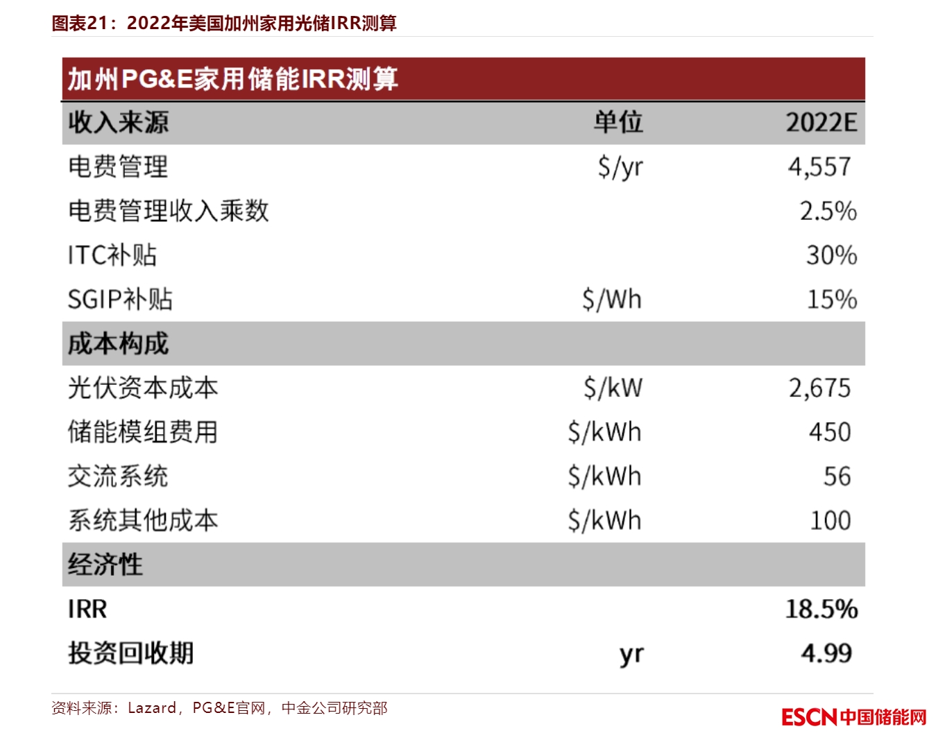 ? 加州:分時(shí)電價(jià)及政策補(bǔ)貼激勵(lì)表后裝機(jī)。考慮到ITC和SGIP,我們測算加州家庭光伏配儲IRR達(dá)18.5%、經(jīng)濟(jì)性較好。