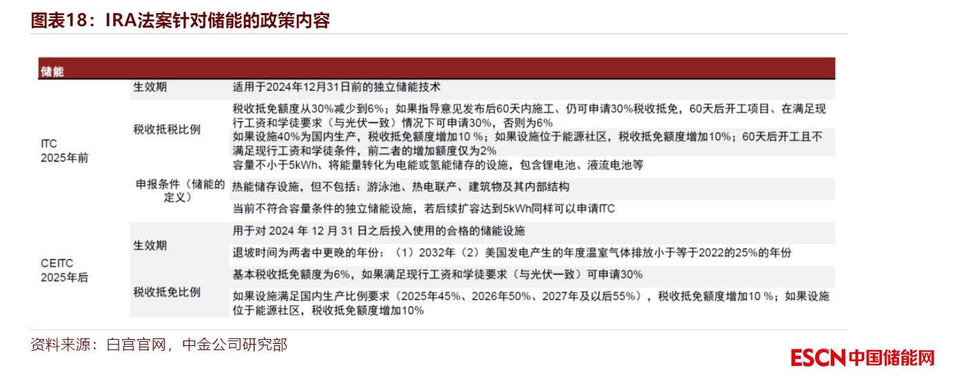 ? 美國方面,海關(guān)政策向好組件運(yùn)量增加,光伏裝機(jī)高增驅(qū)動(dòng)表前大儲放量。美國開始釋放UFLPA扣押的組件,美國地面光伏電站有望迎來快速裝機(jī),美國表前儲能項(xiàng)目盈利方式多樣,且最新IRA法案將獨(dú)立儲能納入ITC范疇,并且提高稅收抵免額度(從26%提高至30%,甚至最高可達(dá)50%)[1]。我們預(yù)期2023年美國表前大儲需求量有望提升至70GWh,同比增長超50%。