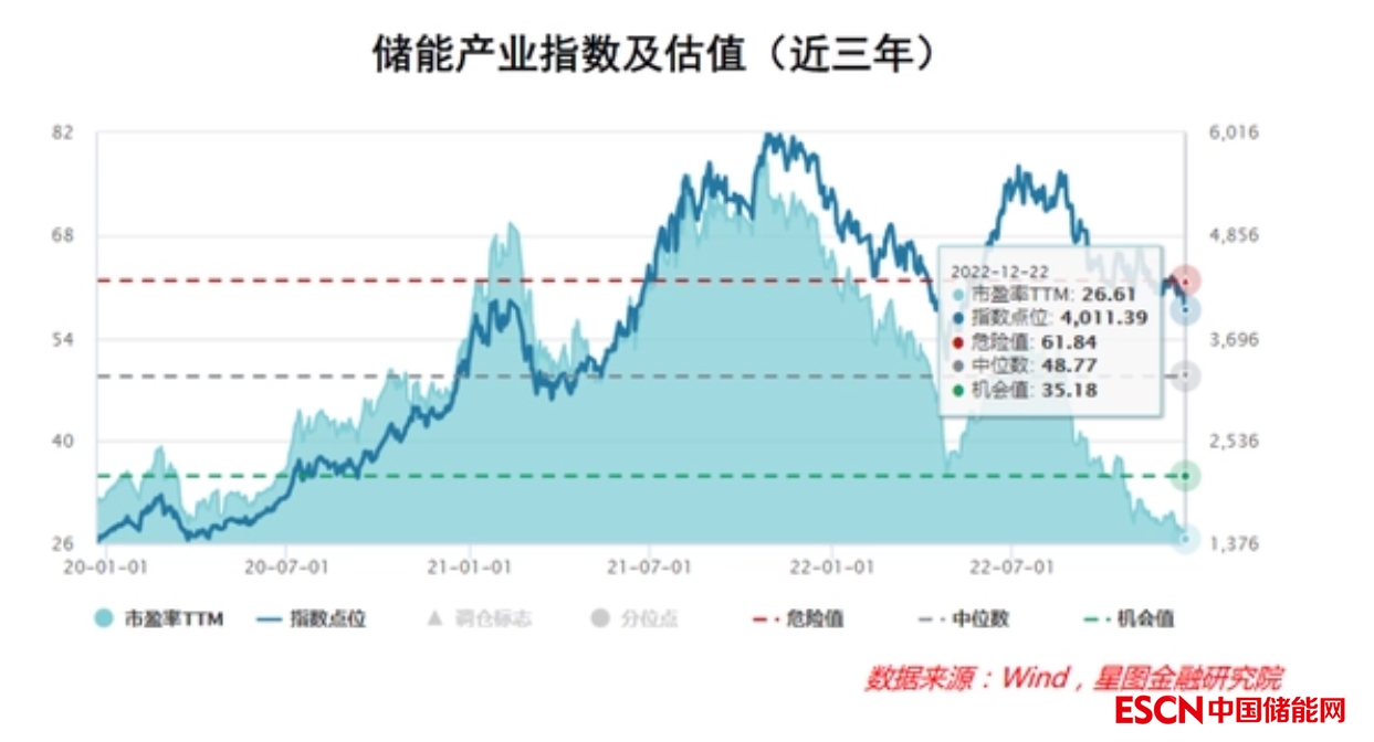 基本面之外,儲能當(dāng)前的估值也具有較高性價比。