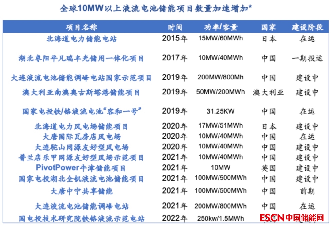可以看到,2020年之后10MW以上的液流電池儲能項目出現(xiàn)井噴式增長。尤其是國家能源局批準(zhǔn)建設(shè)的首個國家級大型化學(xué)儲能示范項目——大連液流電池儲能調(diào)峰電站(全釩) 的建設(shè)規(guī)模達(dá)到了200MW,總投資38億元。第一期工程已建設(shè)完成,于今年5月正式接入遼寧電網(wǎng),正式進(jìn)入商業(yè)化運(yùn)行階段。