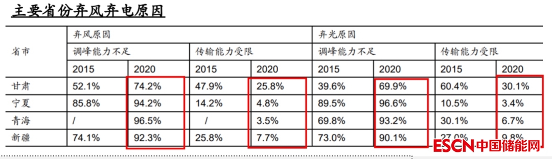 另一方面儲能可以解決西部地區(qū)棄風(fēng)棄電問題。我國風(fēng)光電資源最豐富的地區(qū)是西部,但是用電大戶都在東部,這就有一個資源與需求逆向分布的現(xiàn)象,所以過去為了保證“西電東送”的順利成功,國家大力建設(shè)了高壓輸電網(wǎng)絡(luò),如今“送”已經(jīng)不是困擾新能源消納的主要原因,調(diào)峰能力不足才是關(guān)鍵因素,而且隨著新能源裝機(jī)量的持續(xù)增長這個問題逐步加劇。