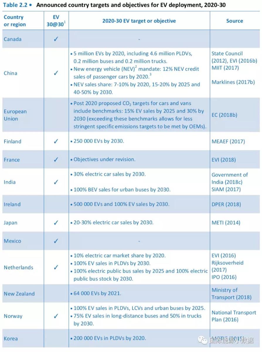 中國儲能網(wǎng)訊:根據(jù)國際能源署(IEA)最新發(fā)布的全球電動車展望報(bào)告,目前已經(jīng)以下15個國家為電動車的發(fā)展設(shè)立了“小目標(biāo)”——