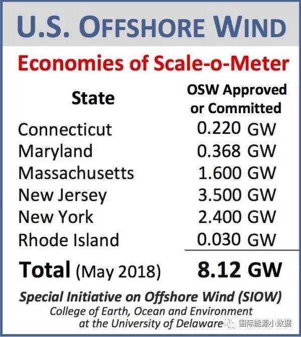 目前美國已經(jīng)有6個州共8.12吉瓦的海上風(fēng)電項目得到批準(zhǔn)或承諾,其中新澤西州3.5吉瓦、紐約州2.4吉瓦、麻薩諸塞州1.6吉瓦。美國能源部預(yù)計2050年美國海上風(fēng)電裝機(jī)可達(dá)86吉瓦,相關(guān)就業(yè)人數(shù)可達(dá)16萬人。