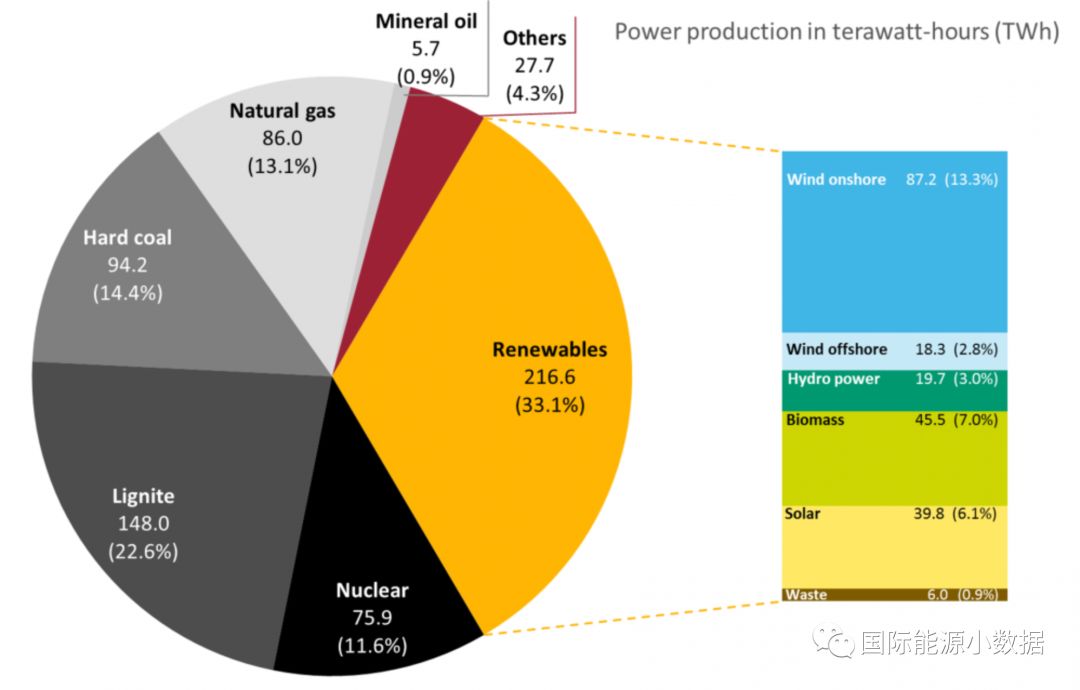 中國(guó)儲(chǔ)能網(wǎng)訊:根據(jù)德國(guó)能源與水務(wù)協(xié)會(huì)(Association of Energy and Water Industries)提供的初步統(tǒng)計(jì)數(shù)據(jù),德國(guó)2017年可再生能源發(fā)電占比達(dá)到33.1%,而2016年這一比例為29%。在33.1%的可再生能源發(fā)電比例中,陸上風(fēng)電為13.3%、海上風(fēng)電2.8%、水電3.0%、生物質(zhì)7.0%、太陽能6.1%、垃圾0.9%。陸上風(fēng)電與海上風(fēng)電合計(jì)占比16.1%,超過了天然氣發(fā)電(13.1%)、核電(11.6%)。然而,煤電依然是德國(guó)電力供應(yīng)的“中堅(jiān)”,占比37%(硬煤14.4%、褐煤22.6%),德國(guó)能源轉(zhuǎn)型依然在路上。