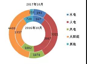 圖1 截至2017年10月底我國分類型新增裝機(jī)情況