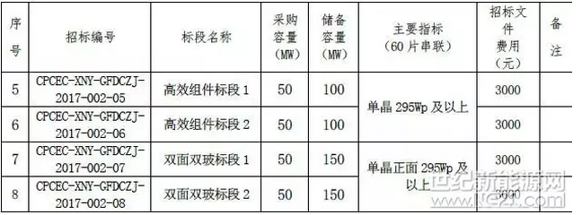 據(jù)悉,11月16日,國家電力投資集團2017年第六十一批700MW組件集中采購(儲備容量為2700MW)開標,據(jù)悉,共有28家組件企業(yè)參與了此次招標。根據(jù)招標文件,國家電投此次招標共包括12個標段,其中單、多晶各4個標段,還包括2個高效組件標段以及2個雙面雙玻標段(見下圖)。