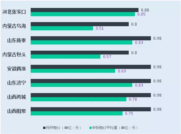 圖2. 第二批“領(lǐng)跑者”基地平均中標(biāo)電價(jià)與當(dāng)?shù)毓夥鼧?biāo)桿上網(wǎng)電價(jià)比較(標(biāo)桿電價(jià)為2016年電價(jià))