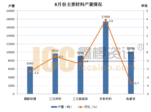 中國儲能網(wǎng)訊:八月份,主要材料產(chǎn)量情況: