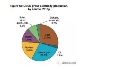 整體而言,2016年化石能源占經(jīng)合組織國家發(fā)電比例高達57.6%,其中煤電依然占27.7%,依然是最大的發(fā)電來源。