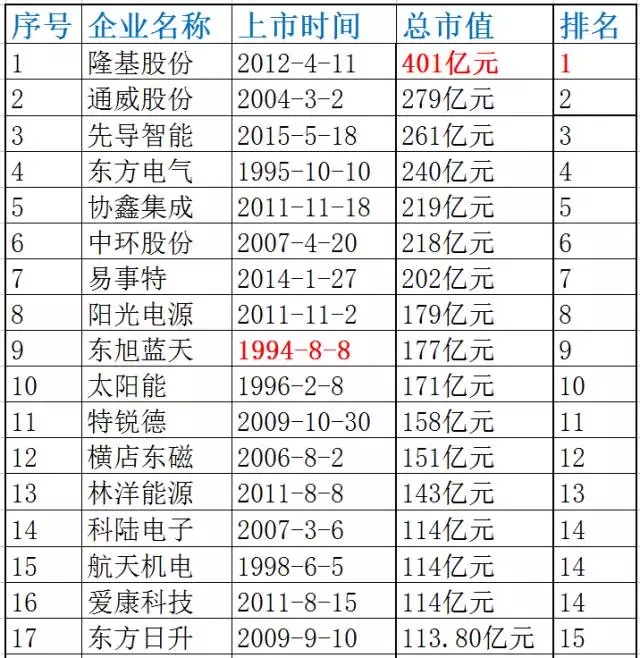 光頭君整理發(fā)現(xiàn),A股上市企業(yè)中,隆基股份是唯一 一家市值超過400億元的光伏企業(yè)。A股有超過7家企業(yè)市值超過200億元,同時2017年光伏上市企業(yè)中加入了兩名“新生力量”——清源股份、科林電氣,其今后的業(yè)績讓我們拭目以待。