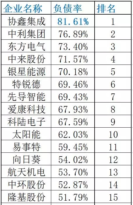 光頭君整理發(fā)現(xiàn),30家企業(yè)中負(fù)債率處于24%-82%期間,跨度較大。負(fù)債率較高的前兩位是協(xié)鑫集成的81.61%和中利集團(tuán)的76.89%。橫店東磁的負(fù)債率最低,僅為24%。