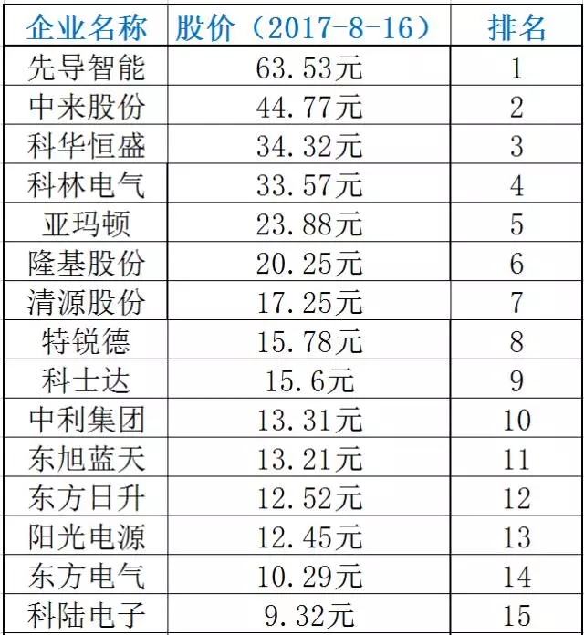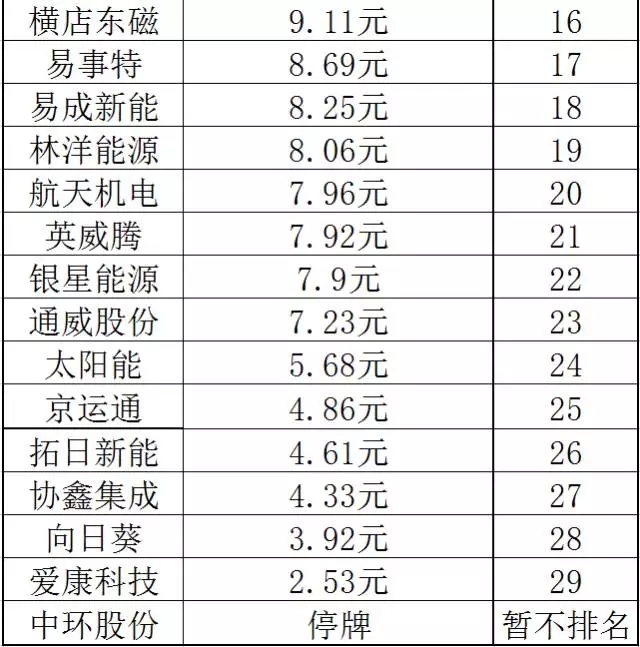 光頭君整理發(fā)現(xiàn),30家企業(yè)中股價排名第一是先導(dǎo)智能,而中環(huán)股份的股票自2016年4月25日開市起停牌。