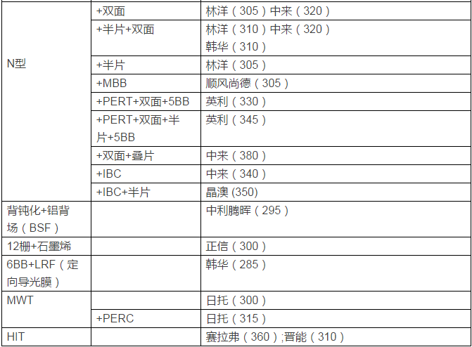 從上表看出,已經占據主流的高效技術路線普通PERC技術難以在超級領跑者中施展手腳,只有少數幾家可以利用普通perc技術做出更高效的產品。在這個競爭平臺中,N型PERC、IBC、HIT、雙面電池等將擁有強大的競爭力。