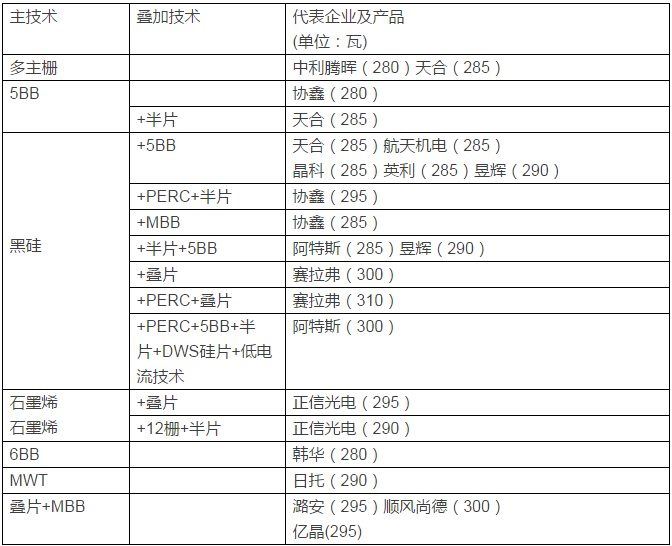 技術實力方面,在數個月前的上海SNEC展會中,各家企業(yè)紛紛拿出最先進的產品進行展示,據統(tǒng)計當時各家展示的不同技術路線疊加后的最高功率(提示:4月份統(tǒng)計,截止目前部分廠家有所提升,并做了部分更新,并不代表現在的技術水平;光伏們將于近期更新各家的最新量產產品效率)。