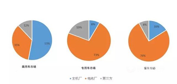 目前,我國動力電池PACK市場格局被主機(jī)廠、電池廠、第三方PACK公司三方分割。其中,主機(jī)廠占了乘用車市場一半以上的市場份額,而電池廠則在專用車和客車領(lǐng)域占絕對主導(dǎo)地位,第三方PACK公司雖然都有一定份額,但是占比并不高。