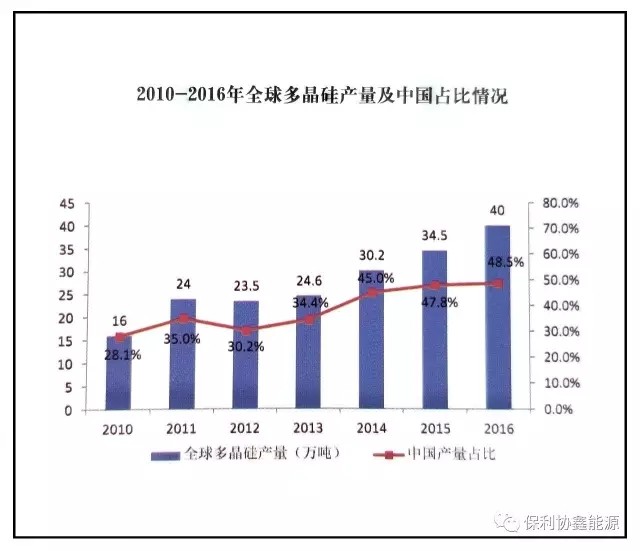 根據(jù)中國(guó)光伏行業(yè)協(xié)會(huì)最新發(fā)布的報(bào)告,2016年,我國(guó)多晶硅產(chǎn)能超過(guò)萬(wàn)噸的企業(yè)有7家,產(chǎn)能利用率高,產(chǎn)量為19.4萬(wàn)噸,同比增長(zhǎng)17.6%,占全球多晶硅產(chǎn)量的48.5%。硅片、電池片、組件產(chǎn)量增長(zhǎng)均超過(guò)20%,占全球總產(chǎn)量比重都在65%以上。強(qiáng)大的光伏制造全產(chǎn)業(yè)鏈,有巨大潛力的光伏應(yīng)用市場(chǎng),助推中國(guó)光伏產(chǎn)業(yè)一步步騰飛。