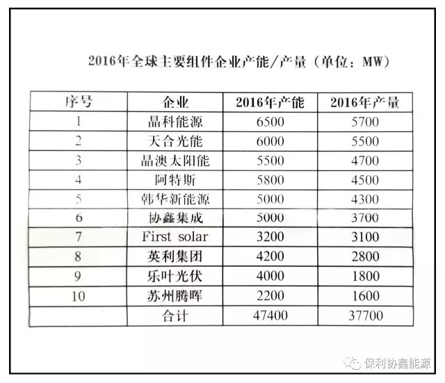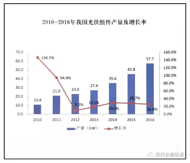 據(jù)不完全統(tǒng)計(jì),截至2016年底,我國(guó)組件總產(chǎn)能約為84GW,組件產(chǎn)量達(dá)到57.7GW,同比增長(zhǎng)26%。組件產(chǎn)能的增加一方面源于電池片轉(zhuǎn)換效率的提高,另一方面則由于光伏市場(chǎng)快速擴(kuò)大,促使產(chǎn)能進(jìn)一步擴(kuò)充。