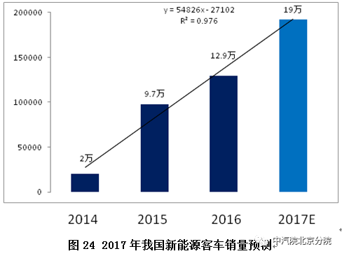 經(jīng)計算,預(yù)計2017年新能源客車銷量為19萬輛。