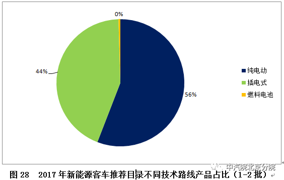 插電式混合動力(含增程式)補貼額度大幅減少,預(yù)計2017年,插電式混合動力客車的銷量還會進一步減少。燃料電池客車市場有待培育,短期發(fā)展仍然緩慢。這一點從2017年前兩批推薦目錄中,三種技術(shù)路線產(chǎn)品數(shù)量占比也得以印證。