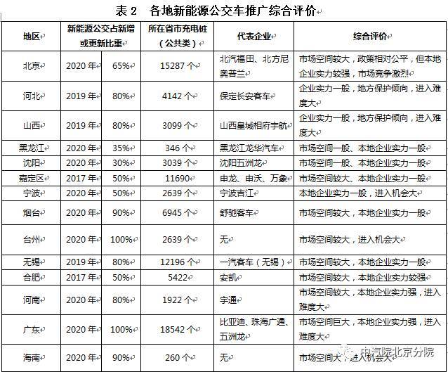 (2)2015年11月3日,交通運輸部、財政部、工業(yè)和信息化部三部委聯(lián)合印發(fā)《新能源公交車推廣應(yīng)用考核辦法》(試行)。新能源公交車推廣應(yīng)用目標完成情況主要考核各省(區(qū)、市)每自然年度內(nèi)新增及更換的公交車中新能源公交車的比重。2017年,新增及更換的公交車中新能源公交車的比重20%-60%。