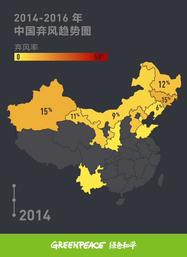 綠色和平還會持續(xù)跟進我國棄風棄光問題,并致力于推動解決方案的出臺和貫徹。如果想了解更新更詳細的棄風棄光數(shù)據(jù),與綠色和平一起關(guān)注中國可再生能源發(fā)展,請到綠色和平官網(wǎng)查看交互式“中國棄風棄光地圖”(其中數(shù)據(jù)會定時更新,請使用PC訪問并收藏)。