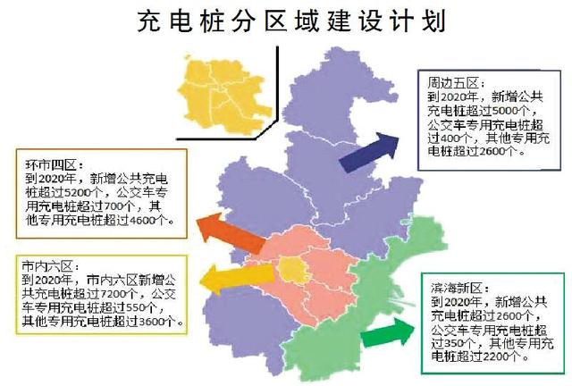 按照規(guī)劃,充電基礎(chǔ)設(shè)施包括公交車充換電站、出租車充換電站、物流環(huán)衛(wèi)郵政等專用充電站、城市公共充電站、公共分散式充電樁、用戶自用充電樁、城際快充站等七大類設(shè)施。根據(jù)規(guī)劃總體目標(biāo),按照適度超前原則,到2020年,在中心市區(qū)、環(huán)市四區(qū)和濱海新區(qū)的建成區(qū),建設(shè)全面覆蓋、密度較高的充電服務(wù)網(wǎng)絡(luò),基本建成平均服務(wù)半徑為0.9公里的公用充電基礎(chǔ)設(shè)施網(wǎng)絡(luò)體系;在環(huán)市四區(qū)和濱海新區(qū)的其他區(qū)域、其他五區(qū)建成區(qū)建設(shè)布局均衡、適當(dāng)集中的充電服務(wù)網(wǎng)絡(luò),基本建成平均服務(wù)半徑為3公里的公用充電基礎(chǔ)設(shè)施網(wǎng)絡(luò)體系;在靜海、寶坻、武清、寧河、薊州區(qū)五區(qū)的其他區(qū)域形成分級(jí)明確、適當(dāng)預(yù)留的充電服務(wù)網(wǎng)絡(luò),基本建成平均服務(wù)半徑為5公里的公用充電基礎(chǔ)設(shè)施網(wǎng)絡(luò)體系。