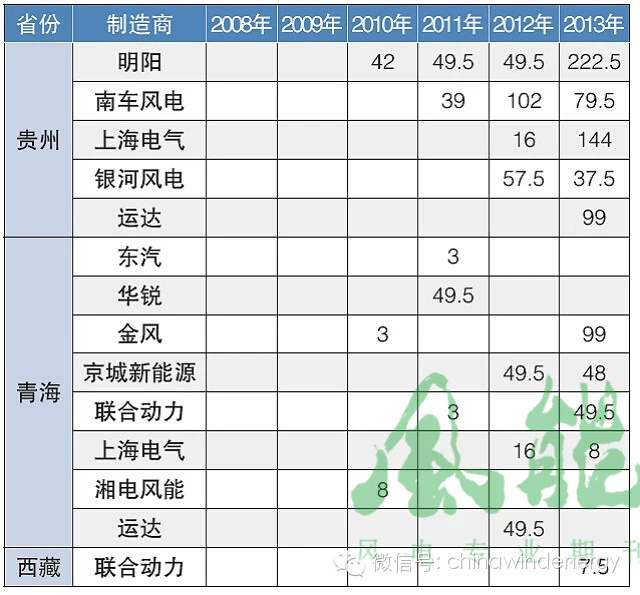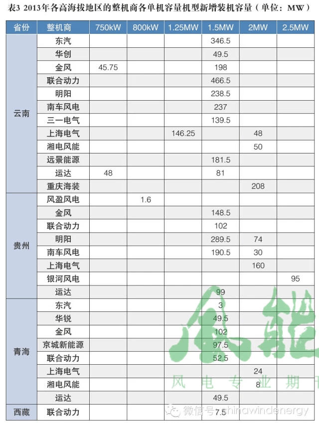 2008年金風(fēng)和運達在云南分別安裝了各自生產(chǎn)的750kW型風(fēng)電機組,至2013年,在高海拔地區(qū)累計安裝風(fēng)電機組最多的整機商是聯(lián)合動力,其次是明陽,以及金風(fēng)、南車、上海電氣。這些整機商在高海拔地區(qū)的風(fēng)電機組累計裝機容量分別為628.5MW、602MW、494.25MW、457.5MW和378.25MW。