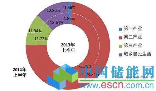 圖2 2013、2014年上半年電力消費(fèi)結(jié)構(gòu)對(duì)比圖