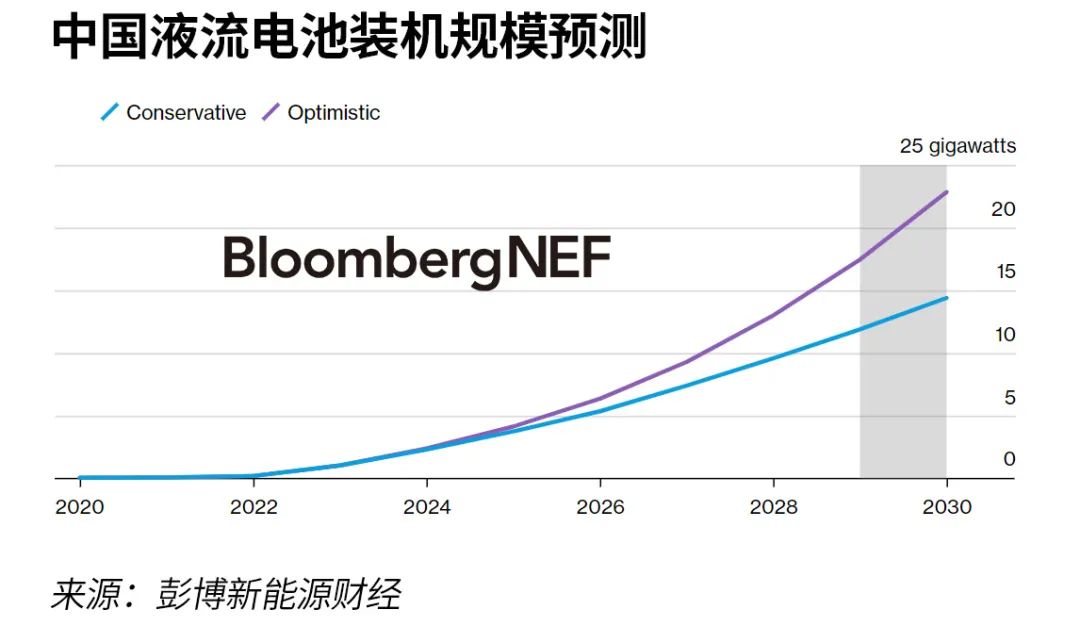 到2030年的中國(guó)液流電池裝機(jī)規(guī)模預(yù)測(cè)