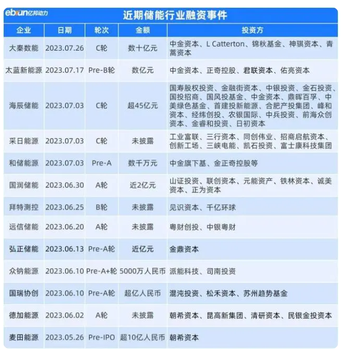 今年以來,多起儲(chǔ)能企業(yè)融資事件的金額都在億元以上。專注于雙碳賽道的投資基金及聚焦清潔能源的風(fēng)投機(jī)構(gòu),紛紛加大對儲(chǔ)能行業(yè)的投資力度。例如7月5日,海辰儲(chǔ)能完成45億元C輪融資;4月17日,融科儲(chǔ)能完成超10億元B+輪融資;3月28日,精控能源完成數(shù)億元C輪融資;3月18日,緯景儲(chǔ)能完成超6億元A輪融資等。圖片
