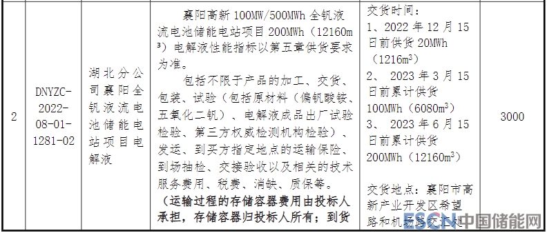 (湖北分公司襄陽全釩液流電池儲(chǔ)能電站項(xiàng)目儲(chǔ)能系統(tǒng)及控制系統(tǒng)設(shè)備、電解液采購)