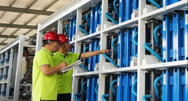 普能公司的質(zhì)保團(tuán)隊(duì)正在對(duì)湖北襄陽(yáng)3MW/12MW VRB-ESS®的電堆和電解液儲(chǔ)罐進(jìn)行例行檢查。