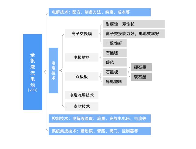 全釩液流電池儲能系統(tǒng)由電堆、電解液、管路系統(tǒng)、儲能變流器等組成,其中電堆和電解液成本占系統(tǒng)總成本的85%左右。