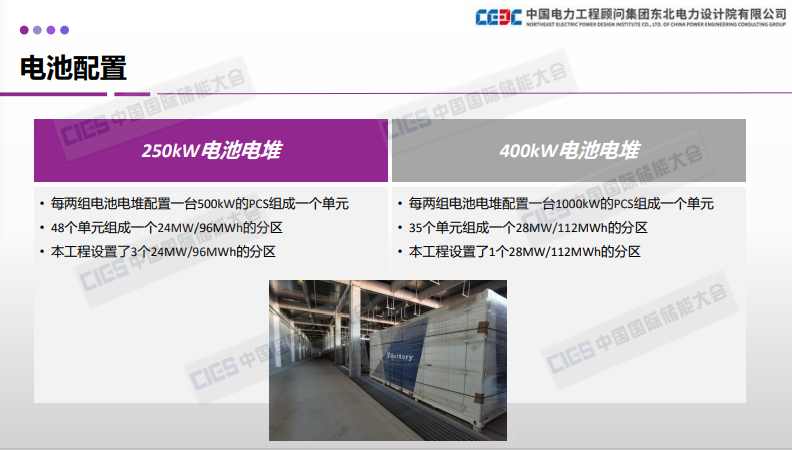 在這個(gè)電站里配備了兩種規(guī)格的電池,一種是250KW電池電堆,一種是400KW電池電堆,形成了三個(gè)分區(qū),3個(gè)24WM的分區(qū)和1個(gè)28MW的分區(qū),加在一起正好是100MW/400MWh。時(shí)至今日,這個(gè)電站的容量規(guī)模算的上是一個(gè)最大的電化學(xué)儲(chǔ)能電站。