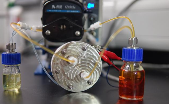 水系液流電池是一種新穎的儲(chǔ)能技術(shù),由兩種處于溶液態(tài)的電解液通過離子交換來產(chǎn)生電能。相比傳統(tǒng)鋰離子電池,液流電池的優(yōu)勢(shì)在于安全、電量輸出功率大、設(shè)計(jì)靈活,適合用于風(fēng)能、太陽(yáng)能等再生能源的電網(wǎng)儲(chǔ)能裝置,以及可快速換電的電動(dòng)交通工具等。然而,液流電池的能量密度低且成本高,較難應(yīng)用于大型電網(wǎng)儲(chǔ)能技術(shù)。