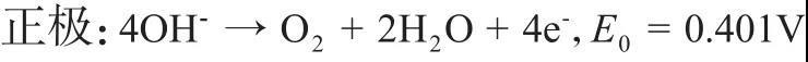 上文提出的關(guān)于提高負極副反應(yīng)來解決鋅積累的問題,雖然達到了解決效果,但是卻犧牲了電池的庫侖效率。為了解決這個問題,程元徽等提出了一個既能夠消除鋅的積累又不損失電池庫侖效率的新方法:在正極原位偶合另一個氧化還原電對(O2/OH-)來消除鋅積累。在正極NiOOH/Ni(OH)2這一原始電對上引進了O2/OH- 這一氧化還原電對,形成了具有雙氧化還原電對的復(fù)合正極,復(fù)合正極與鋅負極組成復(fù)合電池結(jié)構(gòu)。在這種復(fù)合結(jié)構(gòu)里面,放電時鎳電對消耗不了的鋅可以被氧電對消耗,從而避免了鋅積累的問題。復(fù)合結(jié)構(gòu)如圖7所示。