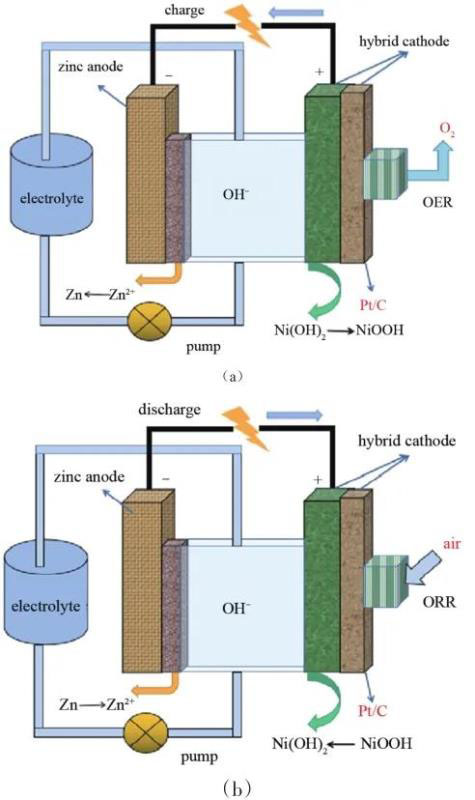 圖7 復(fù)合鋅鎳液流電池的原理圖 (a) 充電過程; (b) 放電過程