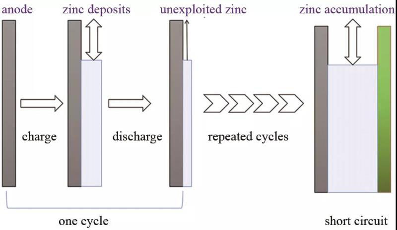 然而,隨著研究的深入,人們發(fā)現(xiàn)該電池出現(xiàn)的許多問題影響到電池的進一步發(fā)展,比如鋅枝晶、鋅積累、極化以及氣體副反應(yīng)等。本文接下來重點介紹該電池存在的主要問題及目前采取的解決方式。