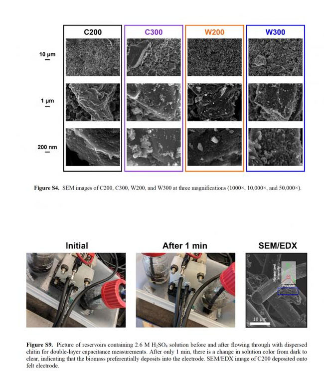 研究團隊將甲殼素沉積在氈狀電極上,并將其作為釩氧化還原流電池的一部分進行測試。測試結(jié)果顯示峰值功率密度改善了~100 mW cm–2。性能的提升固然可喜,但該團隊同樣對該設(shè)計的可持續(xù)發(fā)展性質(zhì)感到興奮。