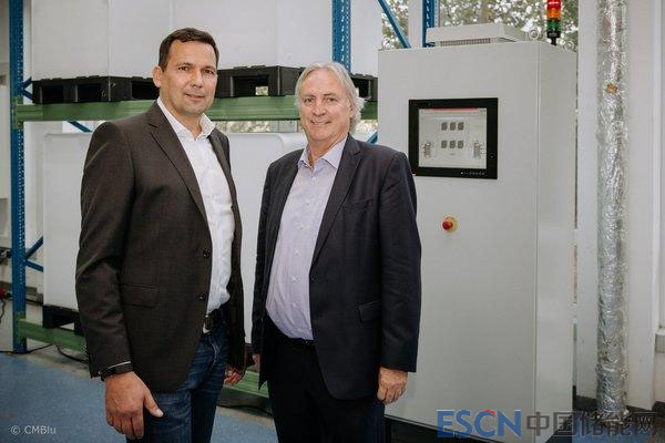 CMBlu公司首席執(zhí)行官彼得-蓋格爾博士(左)與舍弗勒集團副首席執(zhí)行官兼首席技術(shù)官彼得-古茲默教授代表雙方公司簽署了大規(guī)模儲能系統(tǒng)開發(fā)的合作協(xié)議。
