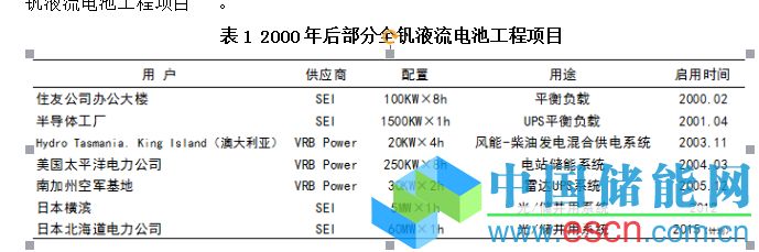 表1 2000年后部分全釩液流電池工程項(xiàng)目