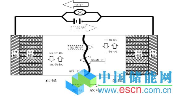 圖5 全釩液流電池電極反應(yīng)原理示意圖