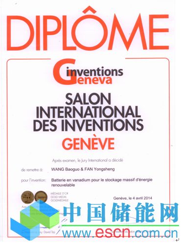 中國儲(chǔ)能網(wǎng)訊:在2014年4月2~6日舉行的第42屆瑞士日內(nèi)瓦國際發(fā)明博覽會(huì)上,清華大學(xué)王保國教授課題組的科研成果“大規(guī)模蓄電儲(chǔ)能的全釩液流電池技術(shù)與裝備” 獲展覽會(huì)特別金獎(jiǎng)。日內(nèi)瓦國際發(fā)明展創(chuàng)辦于1973年,是世界上舉辦歷史最長、規(guī)模最大的發(fā)明展。本屆發(fā)明展的參觀人數(shù)達(dá)到6萬人,共評(píng)出65項(xiàng)特別金獎(jiǎng)。全釩液流電池是一種適用于風(fēng)能、太陽能等可再生能源發(fā)電過程的大容量蓄電儲(chǔ)能裝備,能夠克服風(fēng)能、太陽能發(fā)電的不穩(wěn)定、不連續(xù)的缺陷。利用該研究成果已經(jīng)開發(fā)成功5 kW、10 kW兩種規(guī)格的電堆,能量效率超過73%,進(jìn)入批量試制階段。該電池具有容量大、壽命長、效率高、成本低、安全可靠的特點(diǎn)。清華大學(xué)的研究成果采用自主創(chuàng)新的質(zhì)子傳導(dǎo)膜、電解液、電堆設(shè)計(jì)與制造技術(shù),在電池性能與性價(jià)比方面十分具有競(jìng)爭力。本次在日內(nèi)瓦國際發(fā)明展覽會(huì)獲獎(jiǎng),是我國全釩液流電池儲(chǔ)能裝備與技術(shù)在國際上首次獲得大型獎(jiǎng)項(xiàng),對(duì)我國儲(chǔ)能技術(shù)與產(chǎn)品在國際上得到認(rèn)可具有里程碑意義。