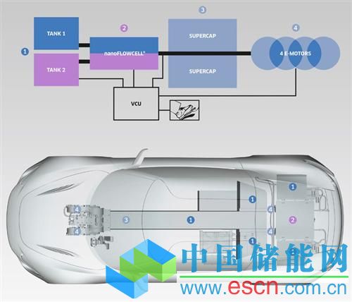 中國儲能網(wǎng)訊:來自歐洲列支敦斯登的nanoFLOWCELL公司在本屆日內(nèi)瓦車展上發(fā)布了QUANT e-Sportslimousine原型車,它是一款采用液流電池技術(shù)的電動汽車。據(jù)悉,液流電池動力系統(tǒng)能夠支持該車行駛400-600公里。