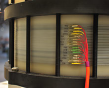 高壓攻勢(shì):普里默斯電力公司(Primus Power)展示其部分新型液流電池單元。公司仍然緘口不言有關(guān)該系統(tǒng)的許多細(xì)節(jié),因?yàn)樗陂_發(fā)首款全尺寸的電池。來(lái)源:麻省理工科技創(chuàng)業(yè)