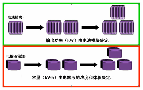 液流儲能電池是一類適合于固定式大規(guī)模儲能(蓄電)的裝置,相比于目前常用的鉛酸蓄電池、鎳鎘電池等二次蓄電池,具有功率和儲能容量可獨立設(shè)計(儲能介質(zhì)存儲在電池外部)、效率高、壽命長、可深度放電、環(huán)境友好等優(yōu)點,是規(guī)模儲能技術(shù)的首選技術(shù)之一。全釩液流儲能電池系統(tǒng)具體優(yōu)點如下: