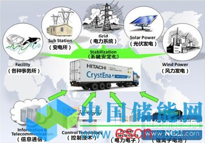 日立的“CrystEna”蓄電系統(tǒng)是能源存儲(chǔ)系統(tǒng)的核心產(chǎn)品之一,由日立的控制系統(tǒng)、逆變器(PCS)及其集團(tuán)公司日立化成的鋰離子蓄電池等構(gòu)成。日立稱,該系統(tǒng)通過蓄電池的長(zhǎng)壽命化控制等提高系統(tǒng)性能的設(shè)計(jì)及小型化設(shè)計(jì),提高了經(jīng)濟(jì)性。